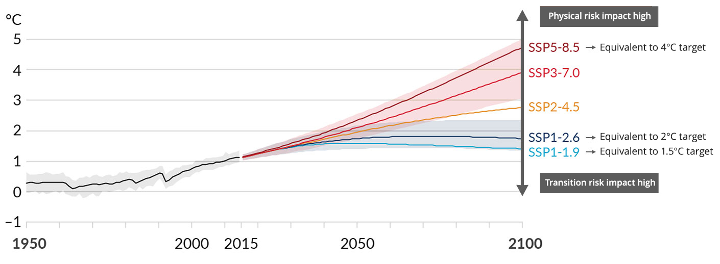 - Intergovernmental Panel on Climate Change (IPCC) 1.5°C rise (SSP1), 2°C rise (SSP1, RCP2.6), 4°C rise (SSP5, RCP8.5)
